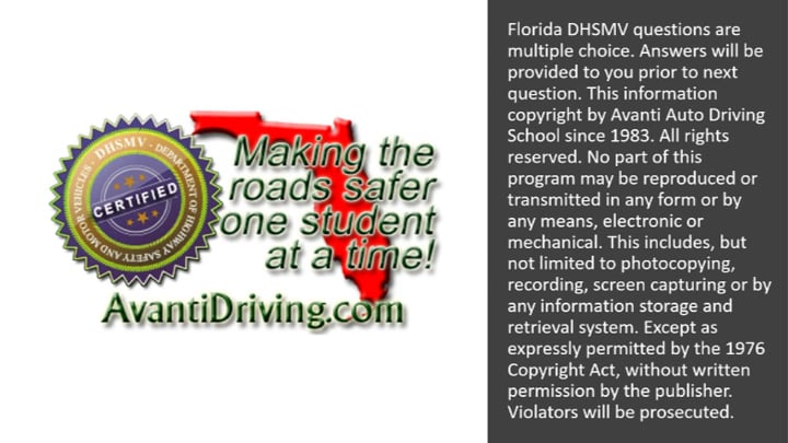 Florida Motor Vehicle Driver License Practice Exam Questions